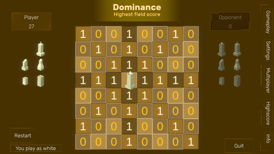 Turn-based strategy game where the players use their game pieces to gain control of the fields of a chess board one move at a time.