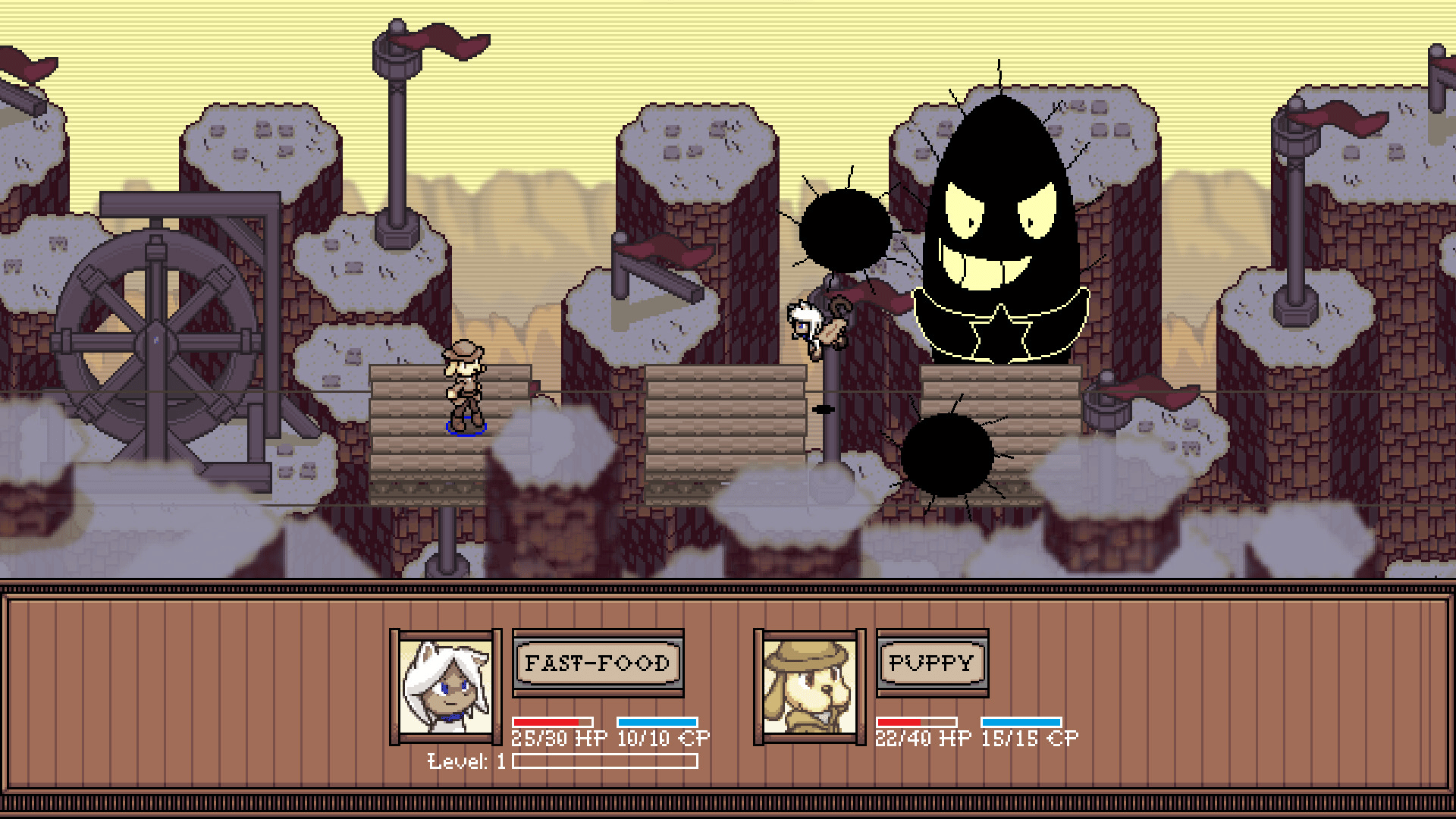 The Twelve Slot Saloon is a Turn-Based RPG with Bullet Hell elements, where your choices matter as you travel across "The Land Without Happy Endings"! Play as a Cat, and explore this Wonderland by yourself, or with Friends! (Single-Screen Co-op.)