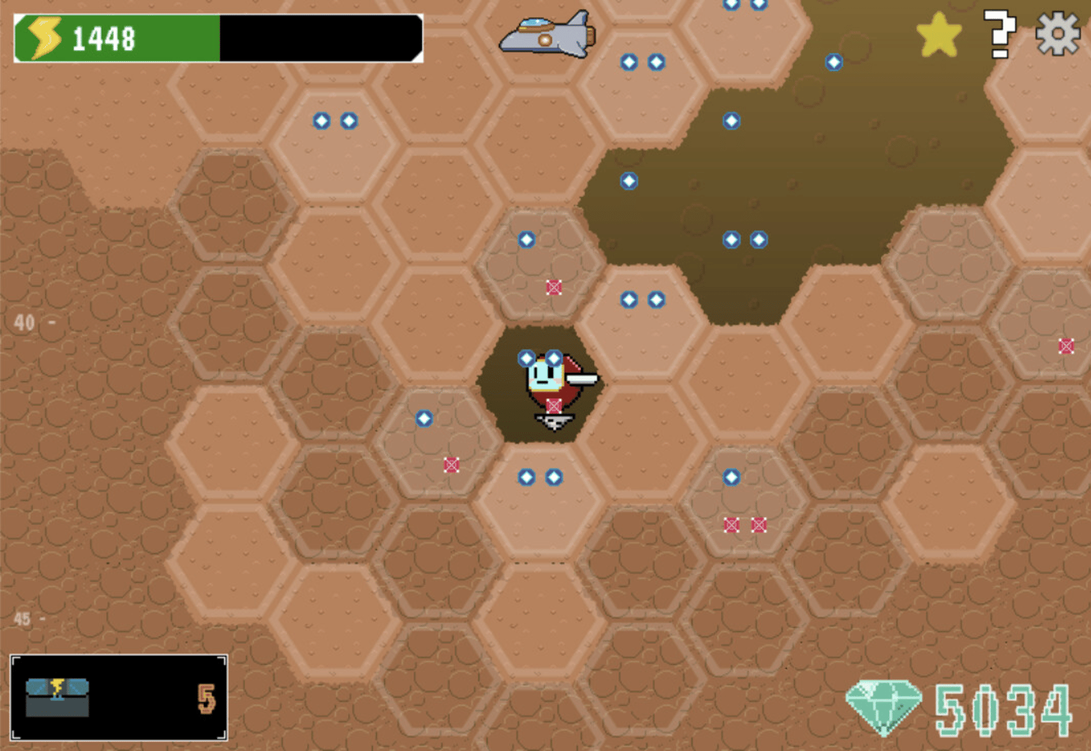 Mine gems on an infinite hex board. Play as a cute robot stranded on an alien planet. Find ship parts to repair your broken space ship. Use markers and logic to find gems and avoid bombs. Skillful play lets you dig longer. Spend gems to upgrade Dig Bot. Unlock achievements for even more power!