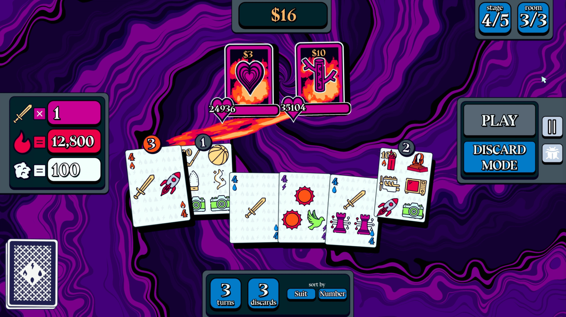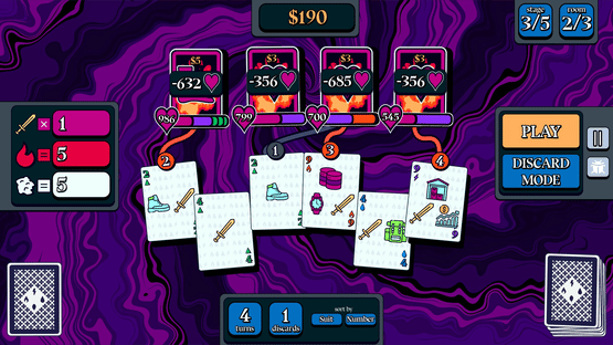 Cardinal Descent is a card building roguelike where you craft elemental synergies and find game breaking sticker combos.