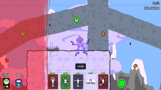 The Upper Hand is a platformer where you must climb through each level as an alien to reach your freedom. Versatility and adaptability are rewarded as you use our deck builder and pose system to create your own path to reach the top.