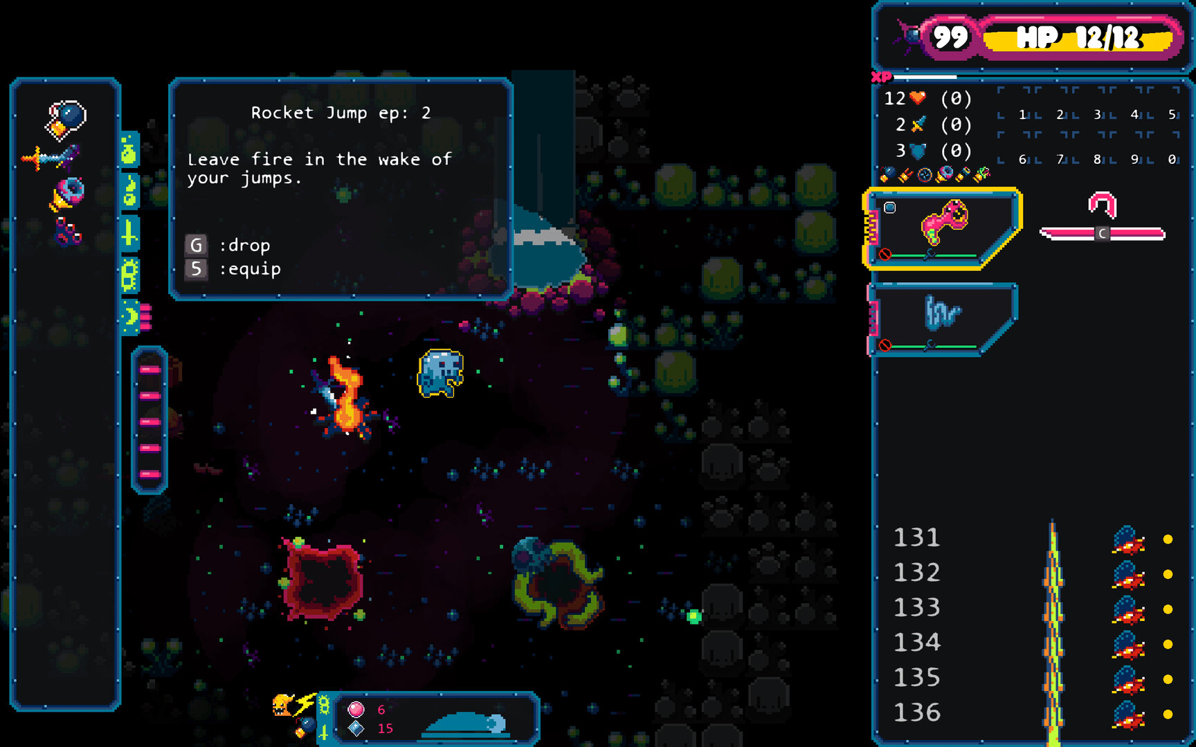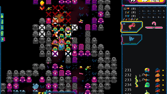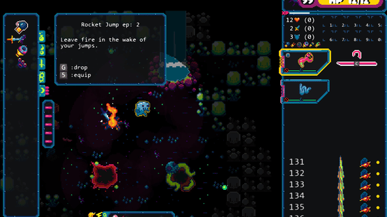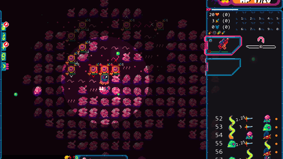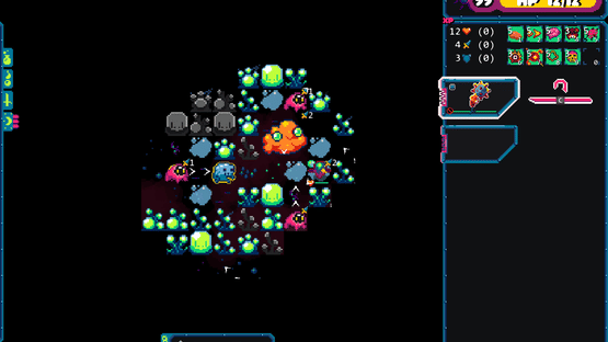 Gum Flesh is a turn based roguelike that takes place on the back of a celestial monster. Use your wits and fragile supplies to take on strange creatures and fauna on a planet where you are definitely not welcome. The air is different here. Your body is starting to change.