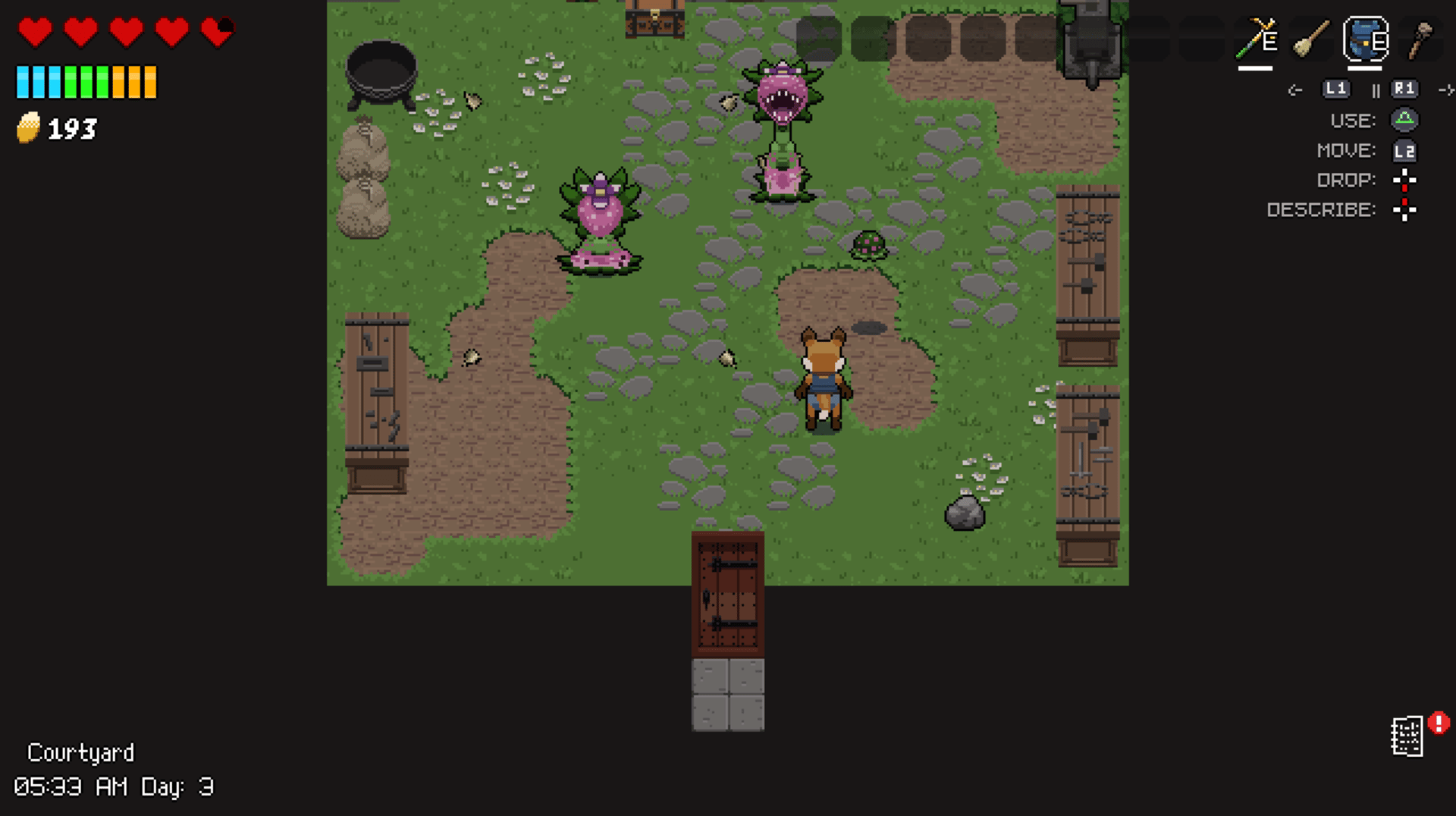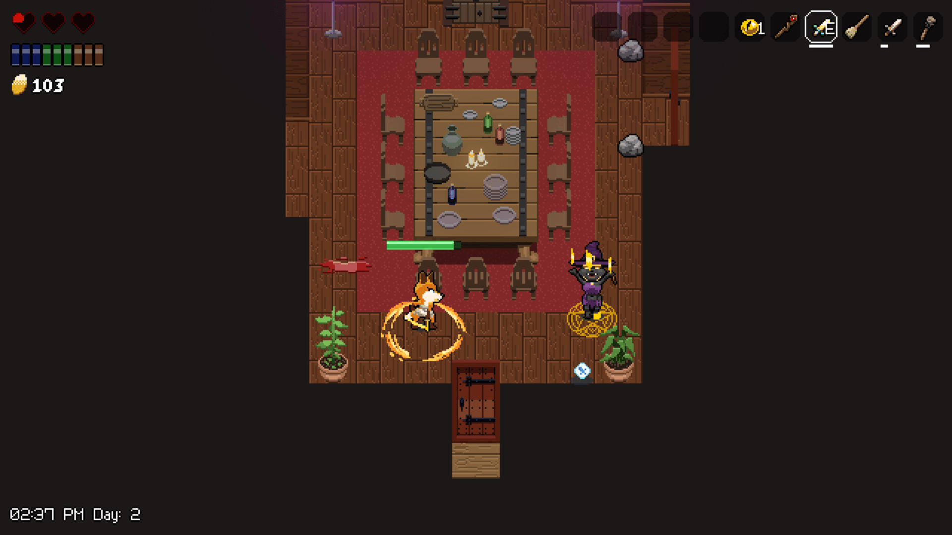 Action-adventure game with management elements where you play as a young fox trying to escape the manor of an evil witch.