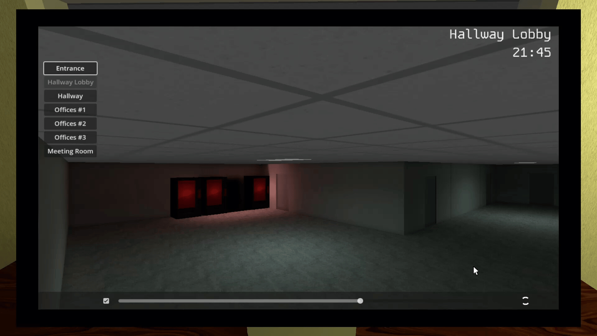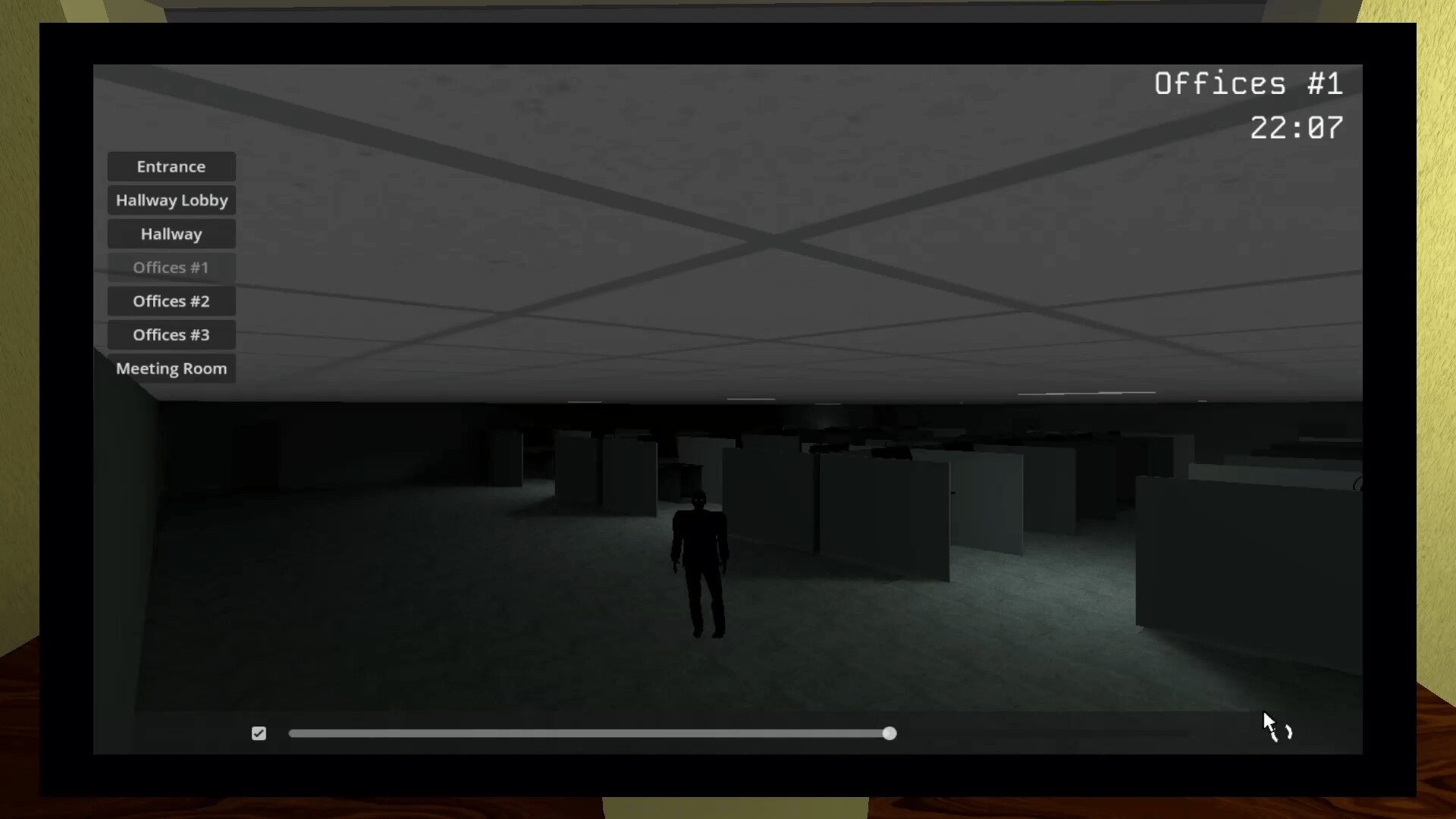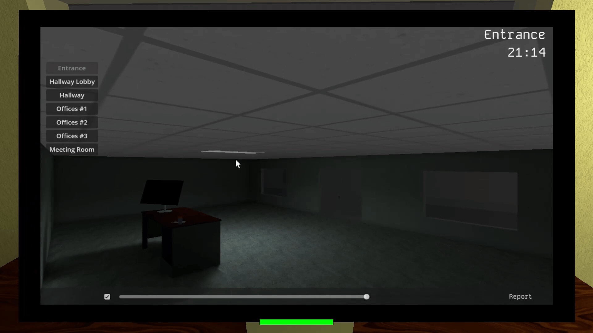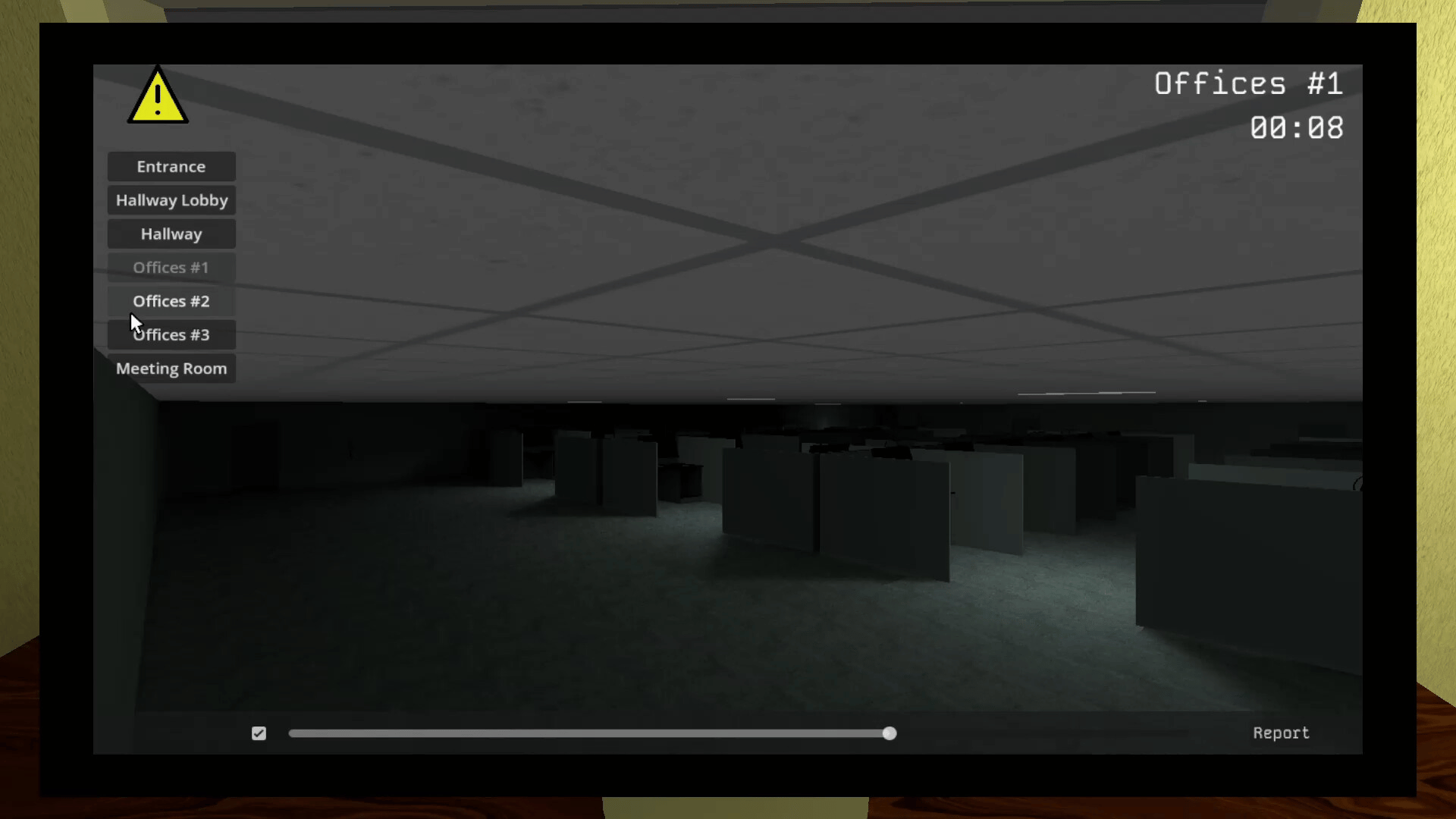 A spot-the-difference-horror game; you use a camera system to locate and report disturbances and thieves, but you can't stay in the cameras the whole night. Getting up from your office to patrol is necessary to keep thieves at bay.