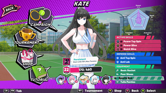 Become the coach of a prestigious sports academy's tennis club, filled with stunning girls who all dislike you. How will you handle it? Win them over, of course! Prepare for intense tennis matches with dynamic gameplay and powerful abilities. Prove your skills and earn their bodies.