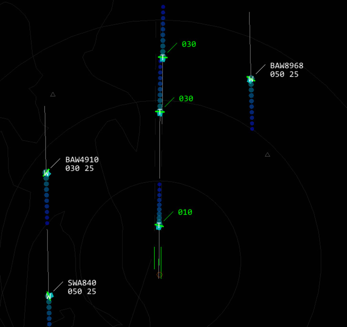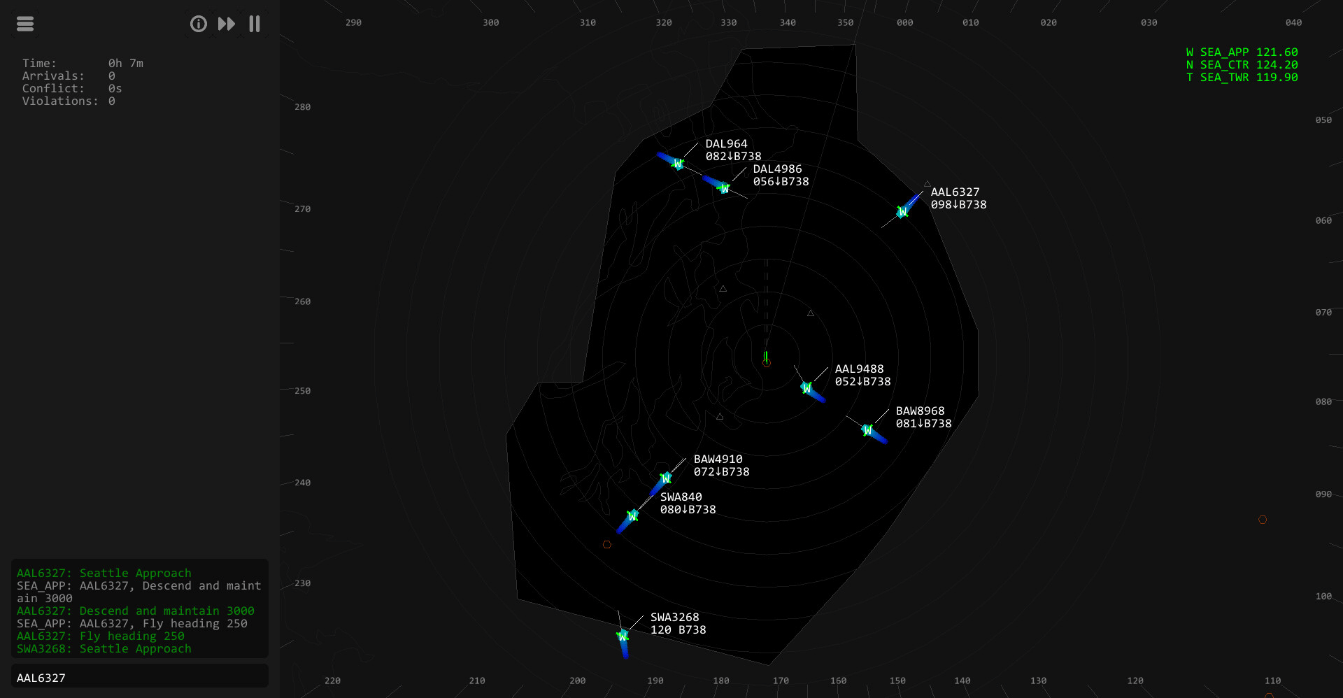 Coordinate max flow rate while maintaining separation between aircraft in this air traffic control simulator.
