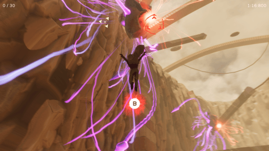 Nadir: Giant Hunter is a fast paced action game. At the Zenith, abyssal creatures awakens and try to climb the Rift. With your grapple, you can swing in the Rift and accomplish your mission : eliminate the creatures before they can reach surface. To do so, swing towards them, get close enough, and slash them in a single shot !