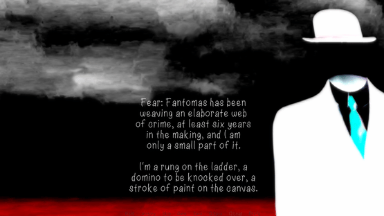 Made for the 02A2 Visual Novel Jam, this short, surreal visual novel is an exploration on the work of Rene Magritte, the allure of crime, and the nature of art.