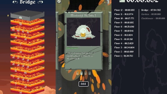 Tower of Nod is an action-roguelike deckbuilding platformer with unique sleep-based controls. You are a Hero that can masterfully manipulate the falling Blocks and build a path upwards... but only while you're asleep! Move quickly and confidently to avoid the blocks above and lava below. Build a deck of pieces at your disposal to aid your journey upwards and grant you temporary boosts. Pair them with powerful relics to create unique synergies. Climb higher and higher while managing your sleeping state to stay out of danger!