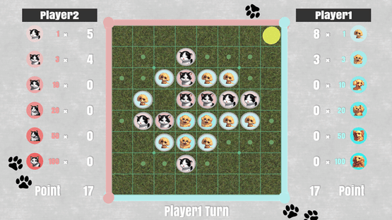 Cute Growth-Based OthelloA growth-based Othello game featuring cute dog and cat characters. Flip your opponent's character and evolve my character into stronger one! Playable in both single-player and local two-player modes.