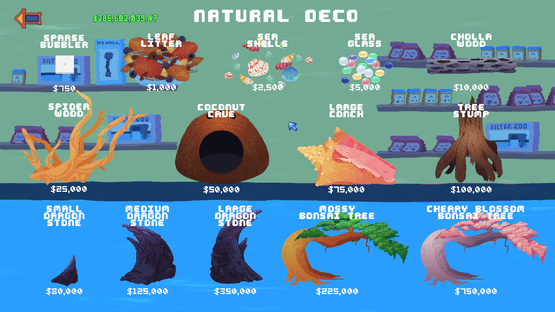 Customize your tanks with 14 nature-themed decor objects in the Fishlets - Natural Decor DLC Pack! Create a blackwater haven using the leaf litter and cholla wood, add some beauty and serenity with the flowing bonsai trees, or decorate your marine tanks with shiny sea glass and seashells.