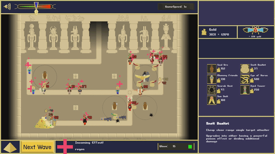 An economy focused tower defense where you play as an Egyptian pharaoh seeking to reclaim his lost wealth in modern times.