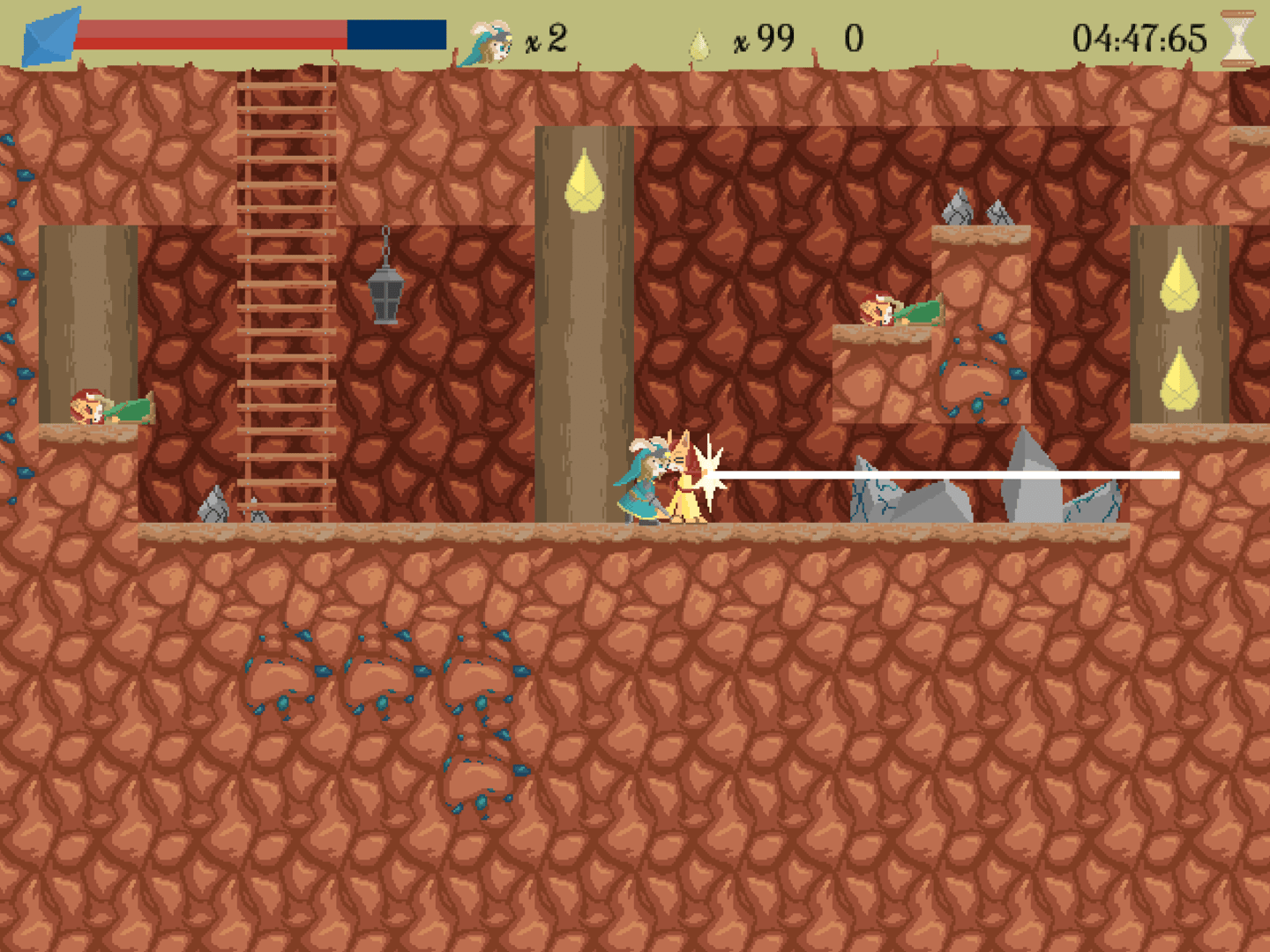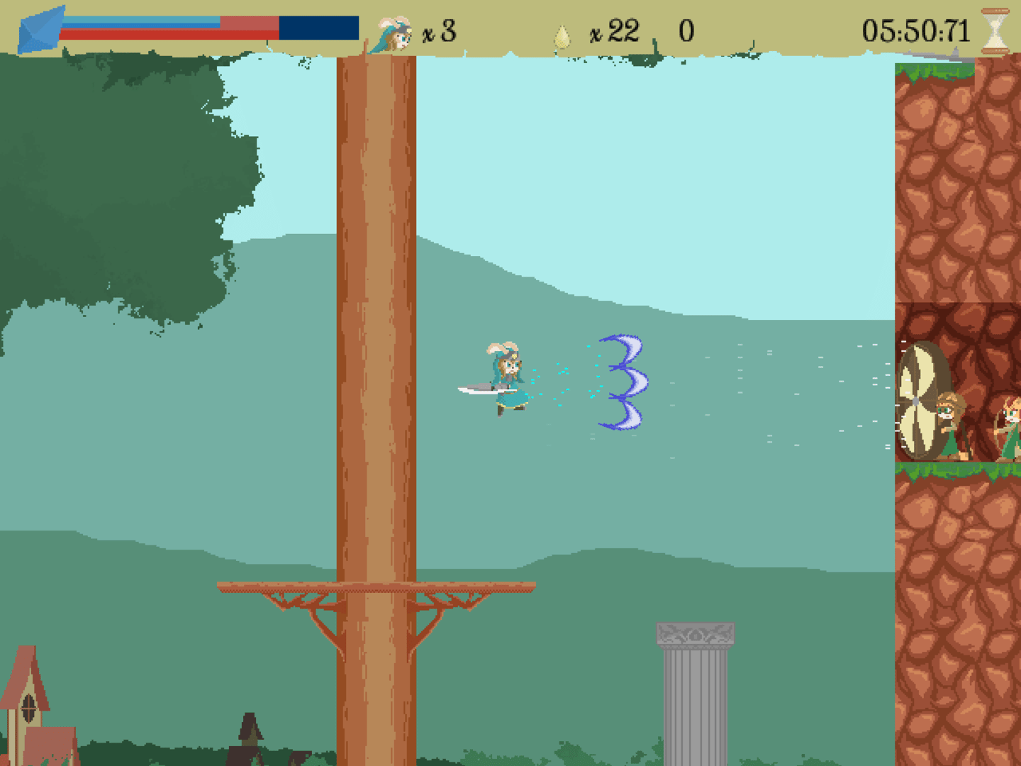BuKnight is a fun and speedy action-platformer mixing the late '90s era mascot fever with the mid-2000s indie game craze. Use your up-and-downsmash attacks, as well as the special swirling move to hurl pain at your enemies or to change your momentum and dodge their attacks as you zoom past or towards them.