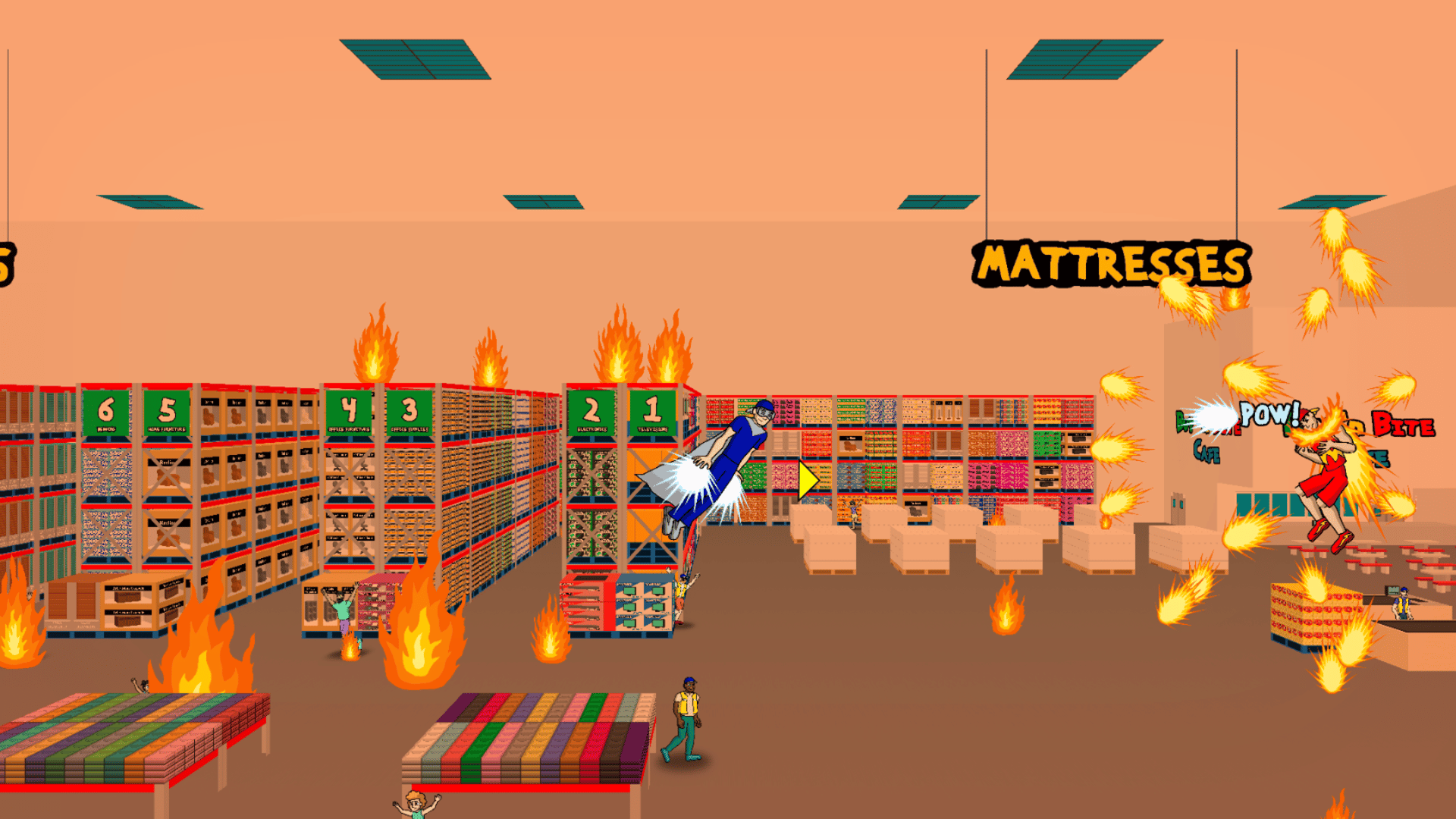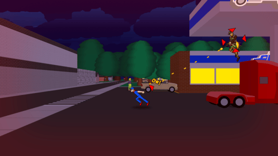 Superguy and Megaboy is a high-speed, free-roam platformer that is somewhere between 2.5D and 3D. Players can attack only on a 2D axis but otherwise move freely in 3D. Attacks will only hit their targets if they are positioned at roughly the same 3D depth.. meaning if you see a bad guy in the distant background, you won't be able to hit him (or vice versa) unless you move up close!