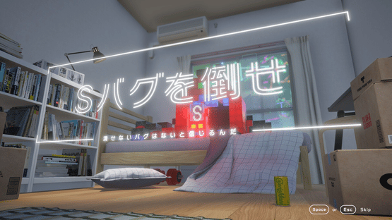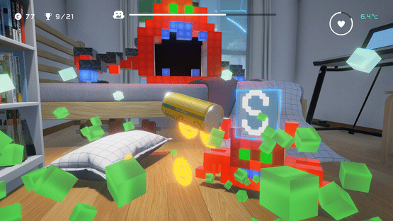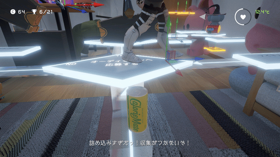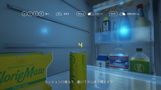 Transform into a can of Calorie Mate LIQUID that jumps out of the fridge and deliver nutrition to a game creator hard at work. This action-adventure takes you on a journey through an apartment room.