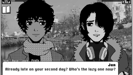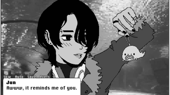 You're a high school troublemaker who was caught committing a petty crime. During your winter break, you had two options: fish trash out of a polluted river for a week or pay a hefty fine. Being as broke as you are, fishing it is. Luckily, you’ve been paired with two cute guys! Not-so-luckily, something doesn’t seem quite right with this water… Well, it’s probably nothing. Let’s hope you can "catch" a date with one of the boys by the end of the week before your community service is over! Reel Me In is a short horror dating sim visual novel… with fishing? Made for Winter Visual Novel Jam 2023.