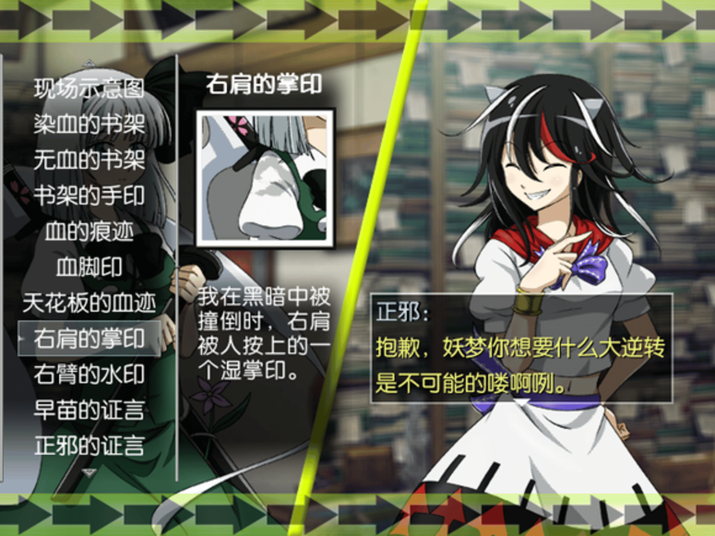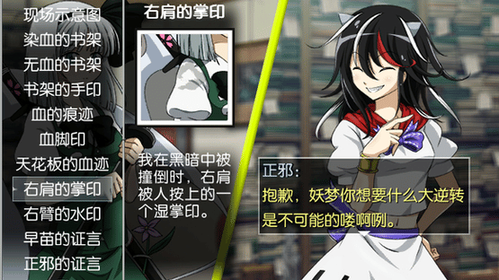 A Chinese Touhou X Ace Attorney fangame where you play as members of the Human Spirit Agency to solve cases.