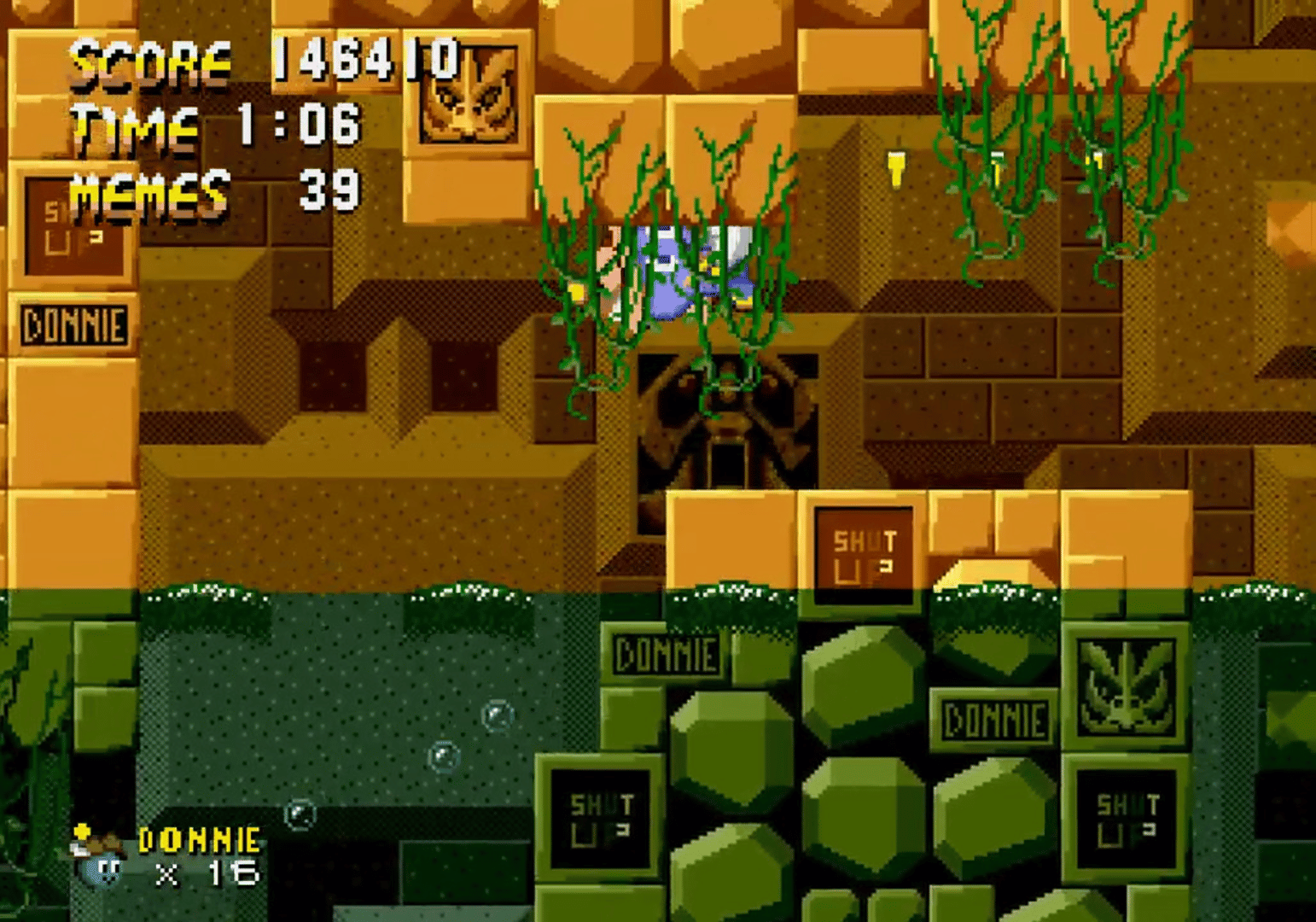 This hack replaces Sonic with Donnie, a fan-created Chao character.