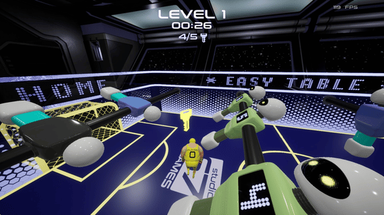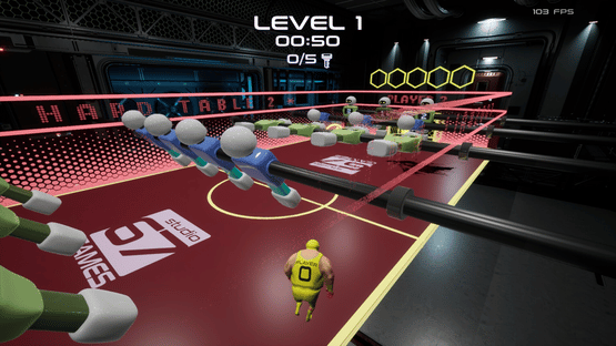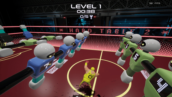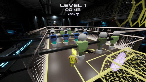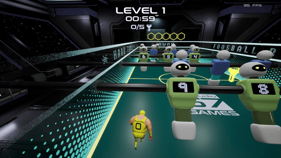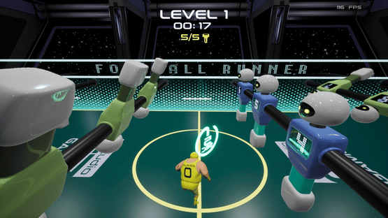 Dive into Foosball Runner, a thrilling twist on table football where you are the ball! Navigate futuristic tables in a spaceship, dodge spinning figures, collect keys, and unlock gates to score under a minute. Use power-ups to stop figures or boost your speed.