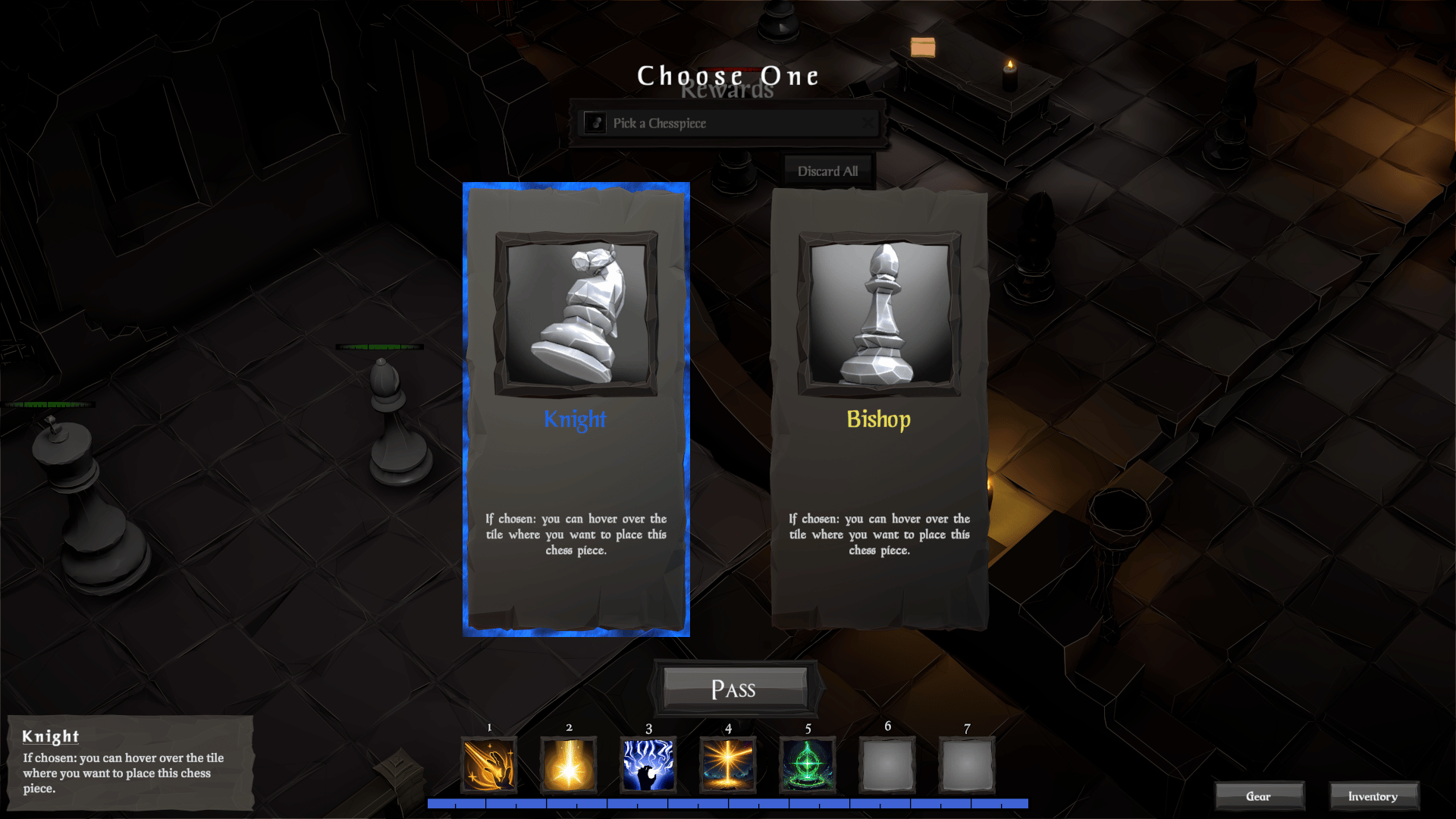 Petrified Pawns has chess-style movement and turn-based combat. Fight new types of chess pieces and bosses. Build your army and keep them alive while you advance through the dungeon. Use healing spells, loot and strategy to keep your king alive and to reach the end with as many units as possible.