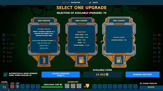 Dive into the ocean's depths, face fearsome sea creatures, and collect their experience crystals. Upgrade your submarines with various combinations of weapons and chips.