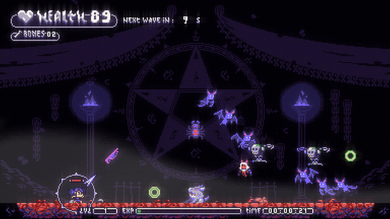 Survive waves of enemies, buy permanent upgrades, befriend colorful characters, die and do it all over again.