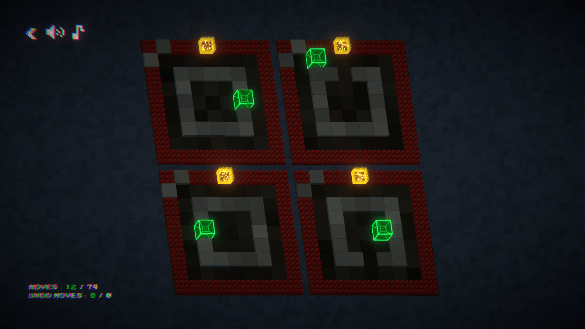 Sokoban style quantum puzzle game. Make your way through many variations of one level at once using one sequence of moves!
