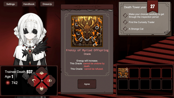 You will play as a Trainee Death, harvesting Souls to pay off your debt. Random choice events offer you various options: Lie in bed and slack off since the debt is endless anyway, Or follow your senior to earn some extra Souls, collecting outfits to switch up your style.