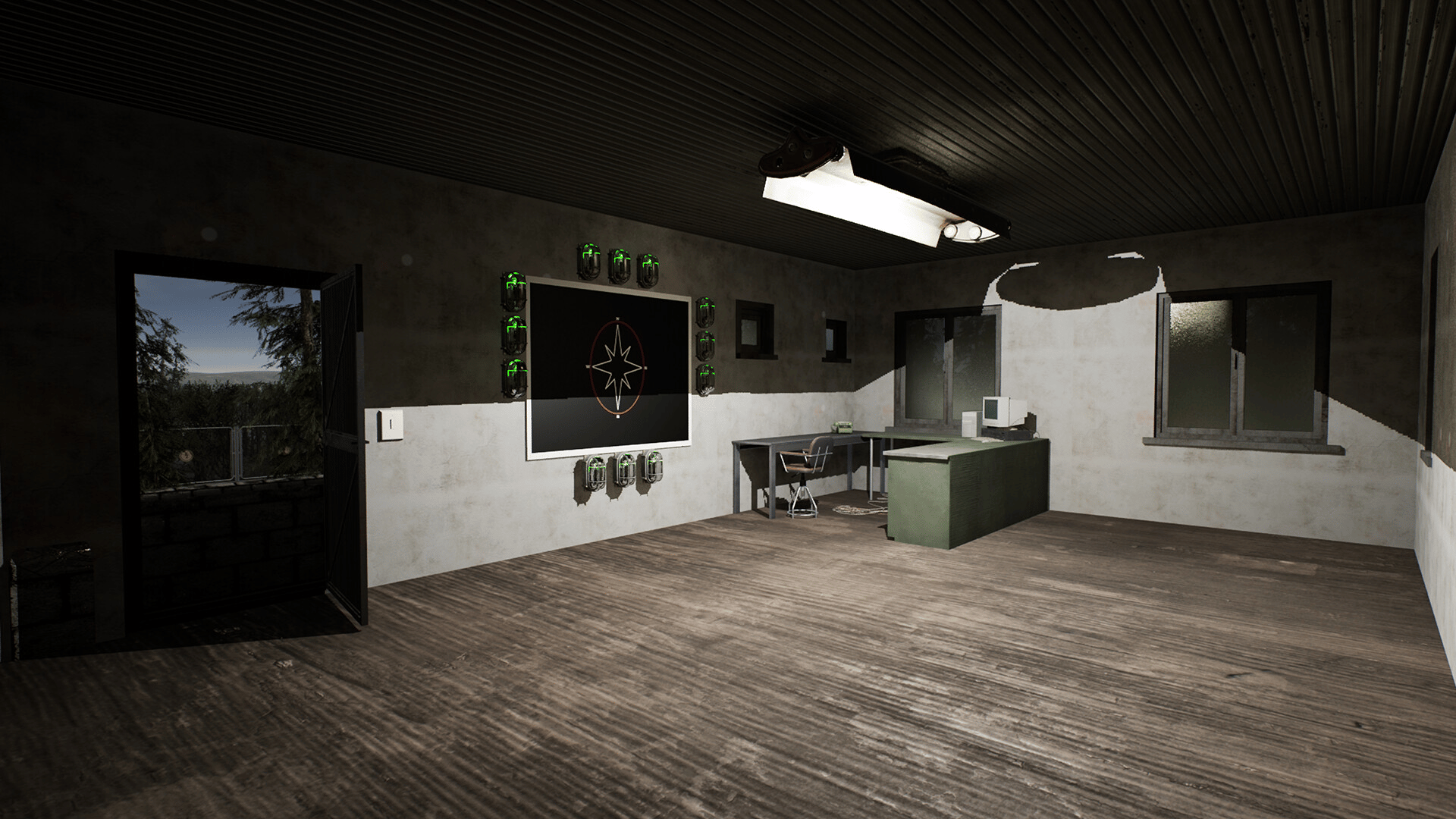 Stop a carnivorous dinosaur from breaking out into the wild. Use CCTV surveillance throughout their night shift to watch over the dinosaur, electrocuting it whenever it gets too close to the fences. During the day, explore the map unravelling the mystery of how the dinosaur ended up in the woods.