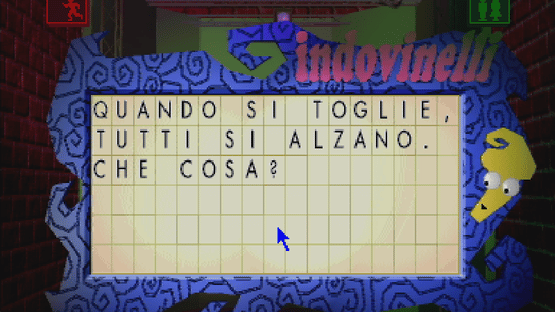QuizMania is an italian exclusive collection of minigames that takes place in a network of tv channels. The player will be introduced to the game itself and to all the mini-games by its only host Raul Cremona, which interprets different characters, one for each game plus the menu and a pirate television that will randomly appear during the gameplay. The included games are - TeleTre: A classic quiz with a question and three possible answers - TeleIndovinelli: A riddle to resolve, where the only input for the player is for revealing the answer - TeleAnagrammi: with a given word, create another word by mixing its letters - TeleRebus: write the phrase by resolving a riddle with a drawing and some letters - TeleLabirinti: multiple letters are arranged in a square formation. The player has to connect all of them to create a phrase - TeleIntruso: find the word that doesn't fit with the other four