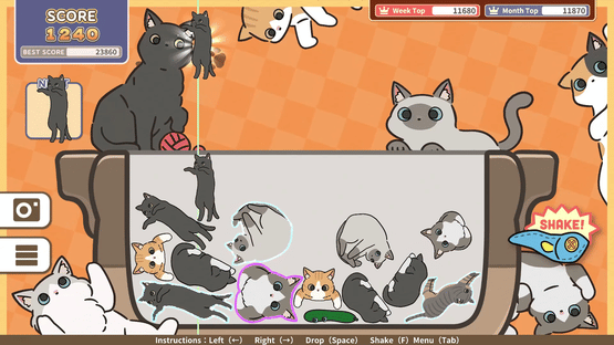 A physics puzzle game in which you have to put cats in a pot and match them! Aim for a high score!
