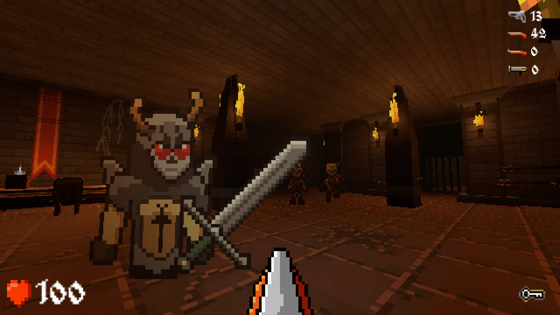 Dreadborne Dungeon is a pixel art, retro shooter inspired by old school games like Doom and Heretic, as well as mechanics taken from Souls Like games and dungeon crawlers. Explore dark dungeons, fight enemies and survive in a retro-styled world. Die, draw conclusions and don't give up! Good Luck!