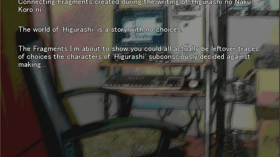 “Higurashi no Naku Koro ni: Kuradashi-hen” is a collection of "what if?" stories derived from scrapped concepts in the writing and development of the original story, showing the way Ryukishi07 went on writing the stories and his thought development process for the Higurashi series. This is a fan visual novel adaptation of the original.