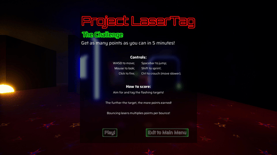 The Laser Games is a casual/competitive shooter, embracing the thrill and experience from real laser tag. Jump in with friends, strangers, or alone, and explore the various maps and challenges as you zap your way to the top! Play it your way- unlock and equip customizations, or contribute to the workshop with your own maps and gametypes!