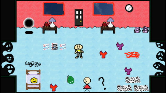 Heavily inspired by Yume Nikki and Don't Hug Me I'm Scared, the content in M o RE Lie s centers specifically around playing as an antisocial adolescent who calls himself Henry, as he traverses the many diverse worlds that are laid out before him. His main objective, however, is to search for the four "Lies"; simply put, four people (including Henry himself) who have an apparent significance which cannot be explained by traditional methods. These important figures are hidden amongst the many various locales, and it is your job, as the player, to of course encounter them and add such beings to your roster. Along the way you, the player, may find yourself learning a little about your own existence, as well as discovering the "true meaning of the universe". And we are afraid this is the only way of going about doing so. Nonetheless, we have decided to let the opportunity to be yours, that is, if you have the desire to help such a story transpire. You have the ability to make that decision now...