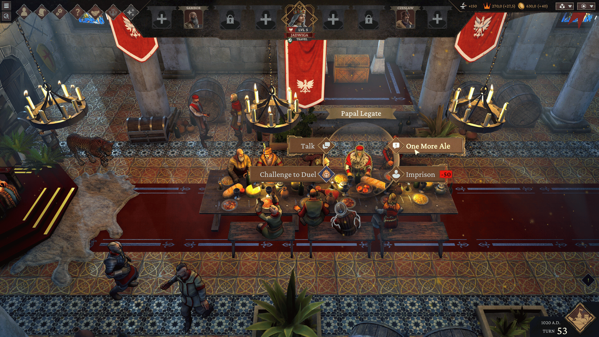 You are the King. Lead your vassals, build your feudal realm and conquer foreign kingdoms in this blend of turn based 4X and realtime rpg. Attend feasts, host tourneys and fight duels. Every character has their own mind so promote the loyal, scheme against rivals and imprison the disobedient.