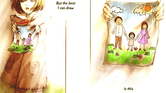 1000 Words tells the story of a little girl whose family is falling apart. One day she meets an artist, and asks him to teach her how to draw better. He answers that she just has to train everyday, and a few years later she'll get better. But that's too slow to her; there's no time.