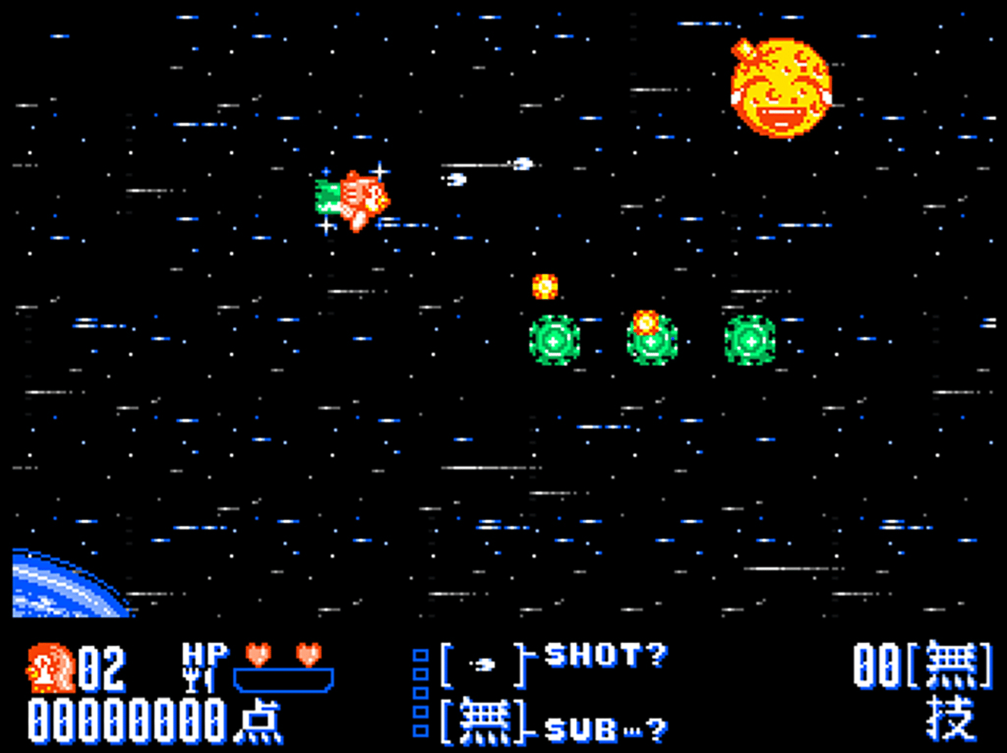 A shoot'em up with 8-bit console-style graphics. Japanese Yokai, Amabie, defends the galaxy by defeating COVID!