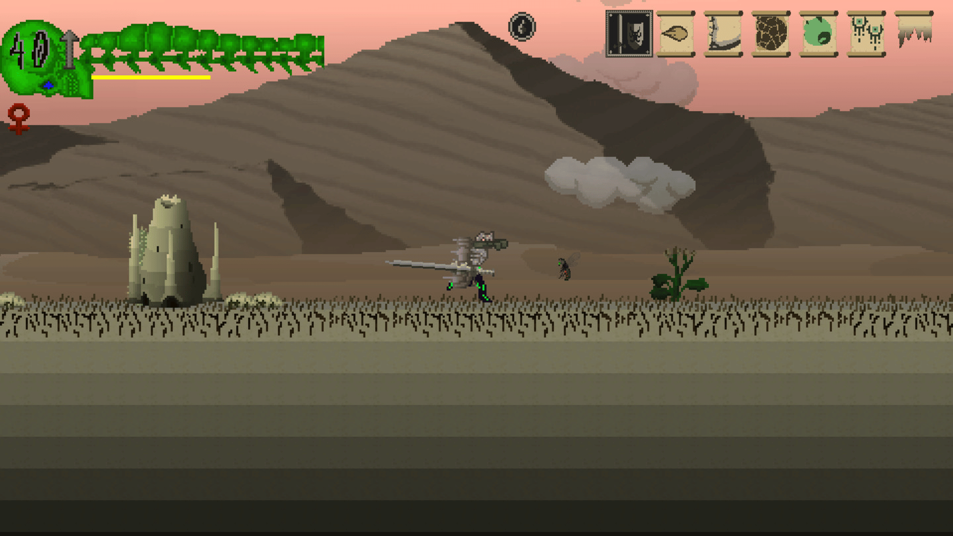Slasher platformer with RPG elements. You have to fight for the creatures of darkness against the kingdom.