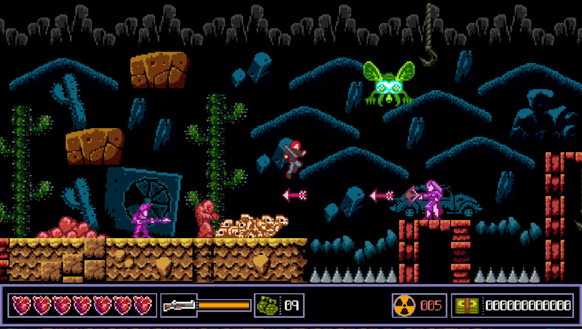 An atomic war has reduced the world to a heap of ruins. However, there are still those who refuse to give up and seek to bring justice even in this chaos. Use your blade, granades and shotgun to fight your way through this post-apocalyptic scrolling action-platformer in pure 80s arcade style.