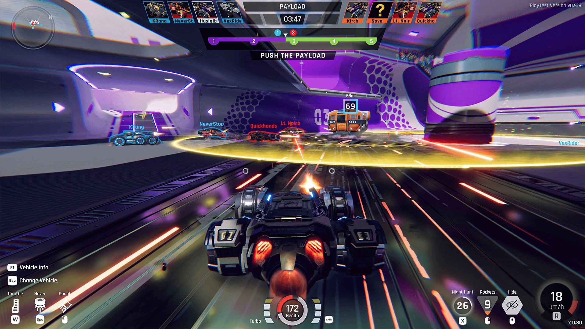 'Rivals Hover League' is a vehicular combat PvP game where players battle in arenas across the galaxy using hover vehicles with various abilities. Join your teammates and show off your skills - hover, boost, shoot your way to become the MVP!