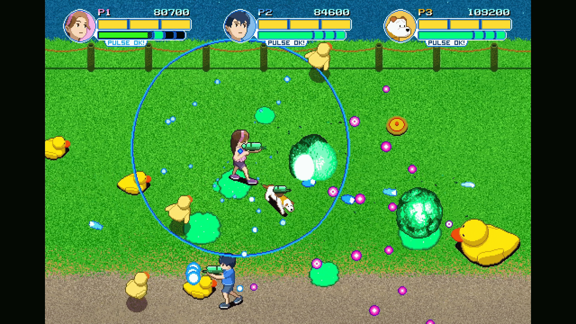 8-way water gun blasting horizontal 2D arcade co-op shoot ‘em up, with ducks?!