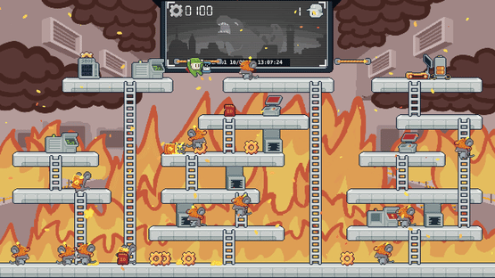 Lead a team of survivors into the abandoned Kaiju Control Force facilities, where bioengineered rats escaped and research went awry long ago, in this one-screen arcade platformer. Jump, climb and buy items from vending machines to reach the Mecha Kaiju Maintenance Bay and reclaim our city!