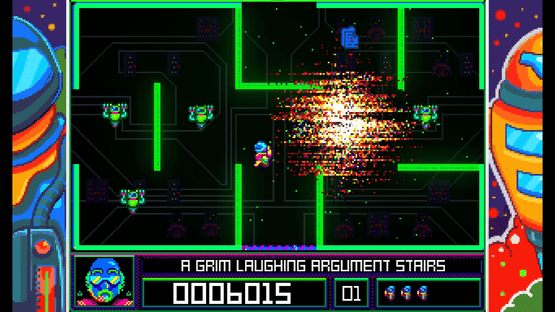 Blast evil robots in a retro psychedelic maze of an office, as you bring down the security servers and make your way home. Die for the Economy! is a retro arcade survival game featuring beautiful, chunky pixel art graphics with a psychedelic slant harking back to the old 8-bit game systems.