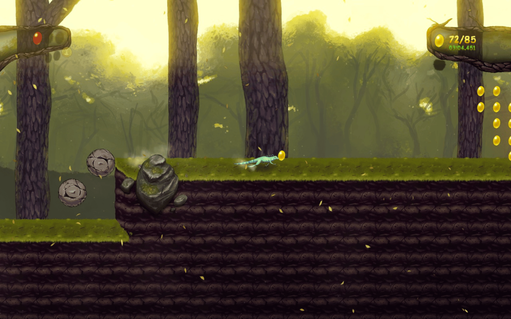 Mitch: Berry Challenge is a Lighthearted Retro inspired 2D Platformer with classic and simple controls, challenging levels, hand drawn animations and a fully composed soundtrack. You'll play as a Green Iguana from the Goain Tribe. The tribe's most important treasure has been stolen and you, Mitch, must go to the island where it was taken and bring it back. Collect all the yellow berries on each level to complete them, race against the clock and battle against two bosses in this charming little adventure.