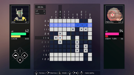 Gridhack is a sci-fi puzzle RPG where you fight nonogram battles to hack your way on an intergalactic quest as you try to find out what happened to a planet called.. Earth?