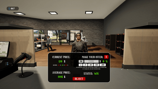Turn the space into a pawn shop! Use fresh paint, stylish floors, and organized shelves to display your items. Buy and sell different goods, making smart, profitable deals. Keep the shop clean to attract customers and sell your items.