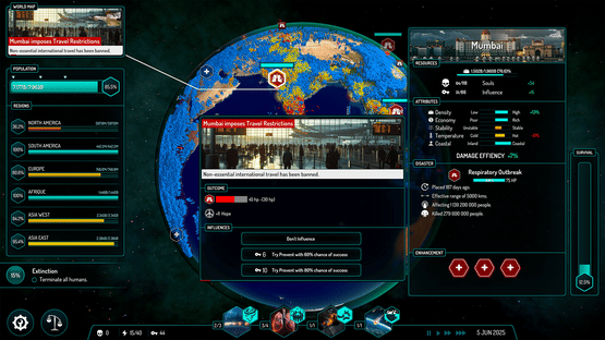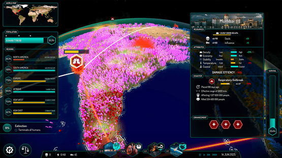 Extinction Day is a doomsday simulator where you wipe out humanity using disasters, diseases, wars, and other catastrophic events. Spread chaos worldwide, combine catastrophes for maximum destruction, and crush humanity's efforts to survive in this game of world-ending mayhem.