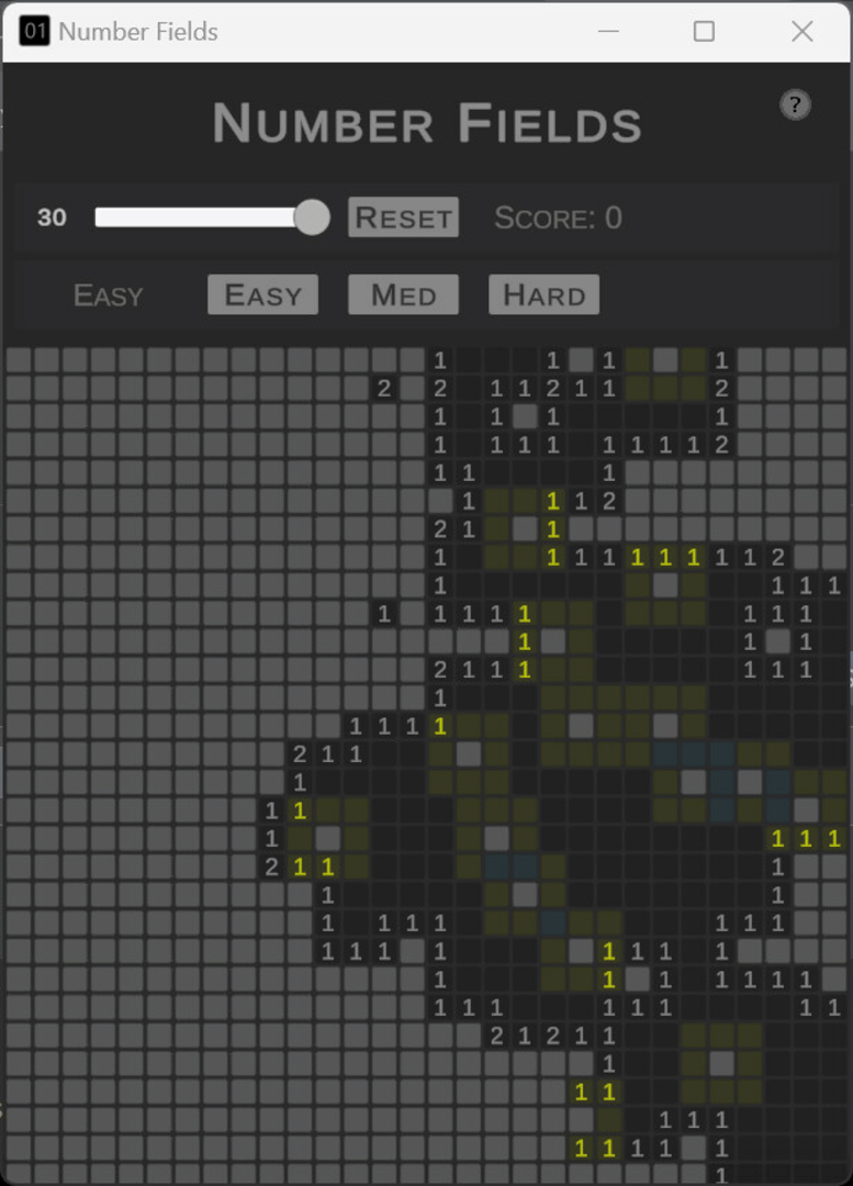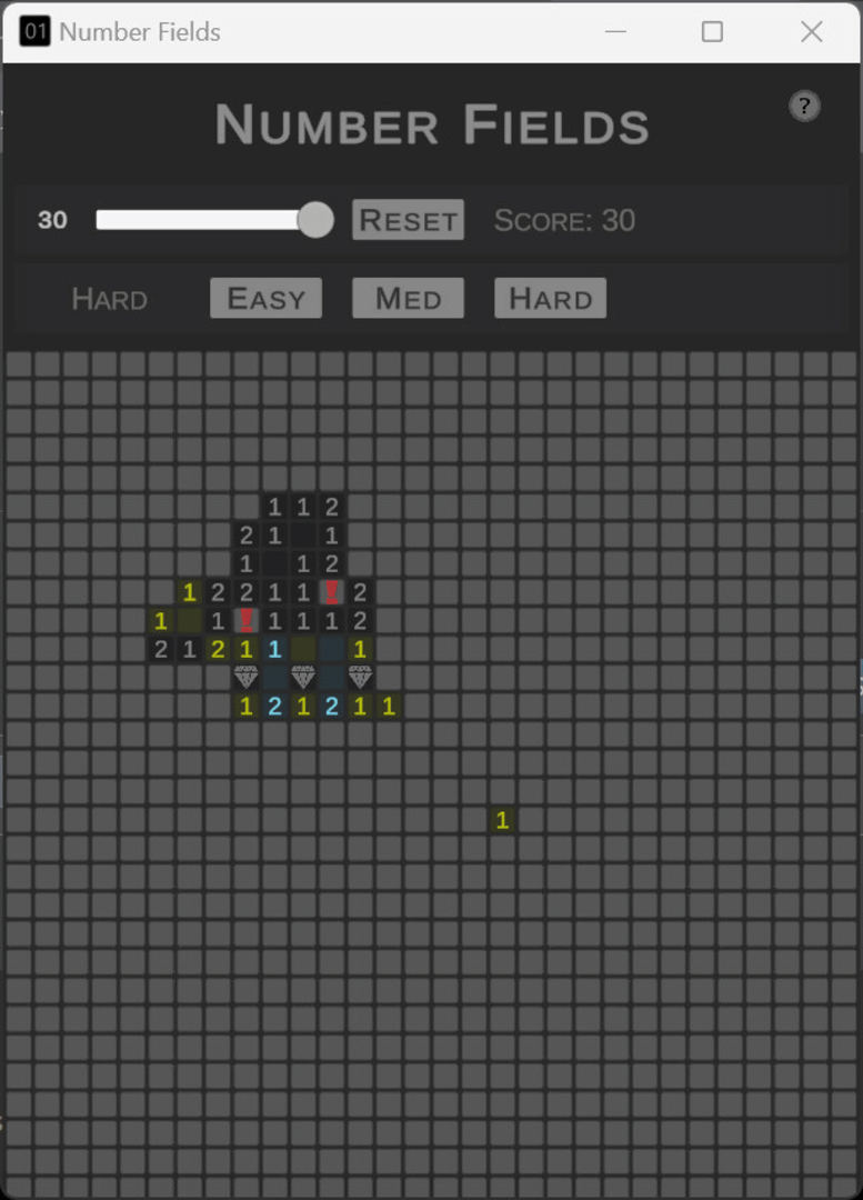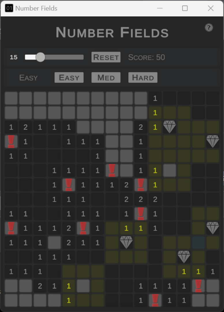 Number Fields is a logic game where players uncover tiles indicating the proximity of hidden bombs and treasures. Choose your difficulty, customize grid sizes, and enjoy. Provides a way to stay fully engaged while calming nervous energy discreetly.