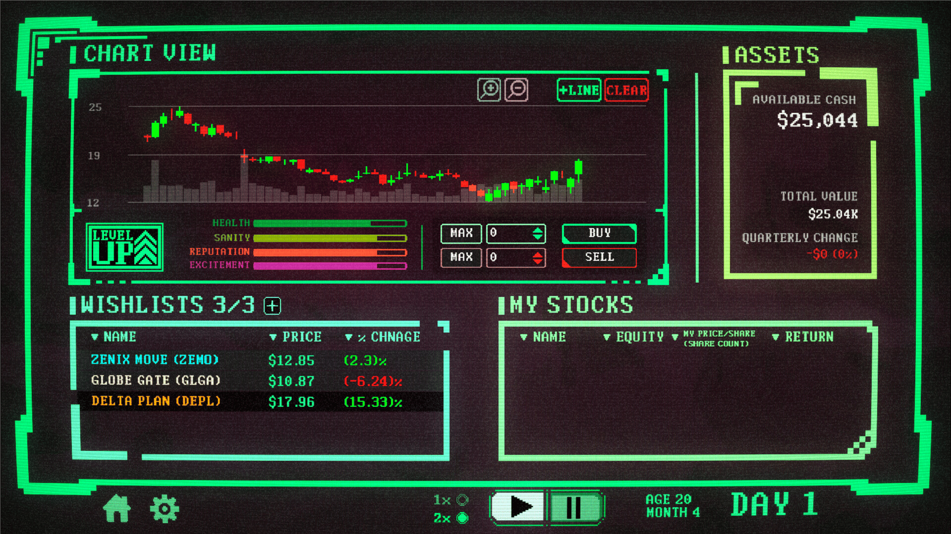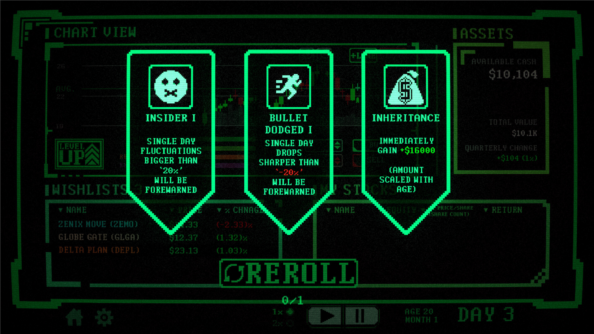 Insider Trading is a roguelike deckbuilder where you bend the market to your will. Synergize perks, manipulate stock prices, and trade wisely or risk pricing yourself out.
